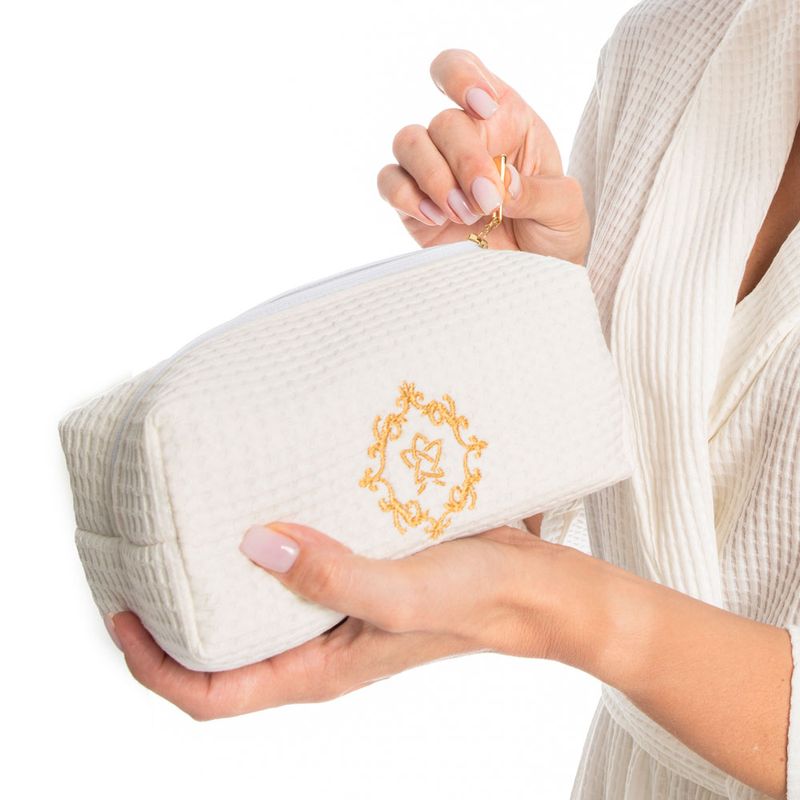 A aparência das necessaires é tão importante quanto sua função. O Conjunto Necessaire Piquet possui um design simples, mas muito elegante. O bordado em dourado adorna cada peça, conferindo um ar de sofisticação que complementa qualquer estilo.