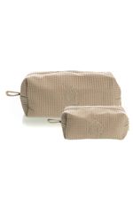 O Conjunto Necessaire Piquet é feito de Malha Piquet, conhecida por ser macia e resistente. Esse material garante que essas necessaires sejam duráveis e confortáveis ao toque, ideais para proteger seus itens pessoais. Com um zíper fácil de usar, suas maquiagens e produtos de skincare estarão sempre seguros.