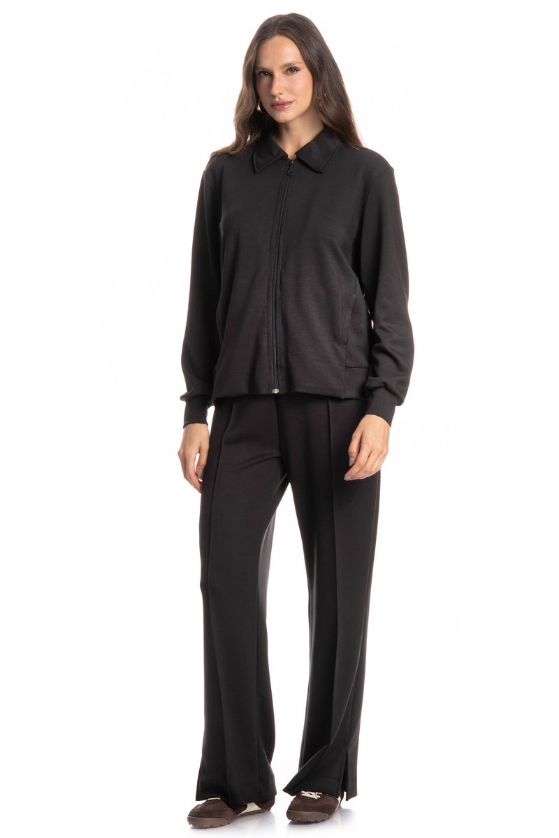 Jaqueta Pauline confeccionada em malha confortável e encorpada, possui modelagem reta com fechamento frontal por zíper, gola tradicional e punhos ajustados, garantindo um caimento moderno e prático. Conta ainda com bolsos frontais funcionais, ideais para trazer mais praticidade ao dia a dia. Versátil e atemporal, é a escolha certa para compor looks casuais e elegantes com muito conforto.