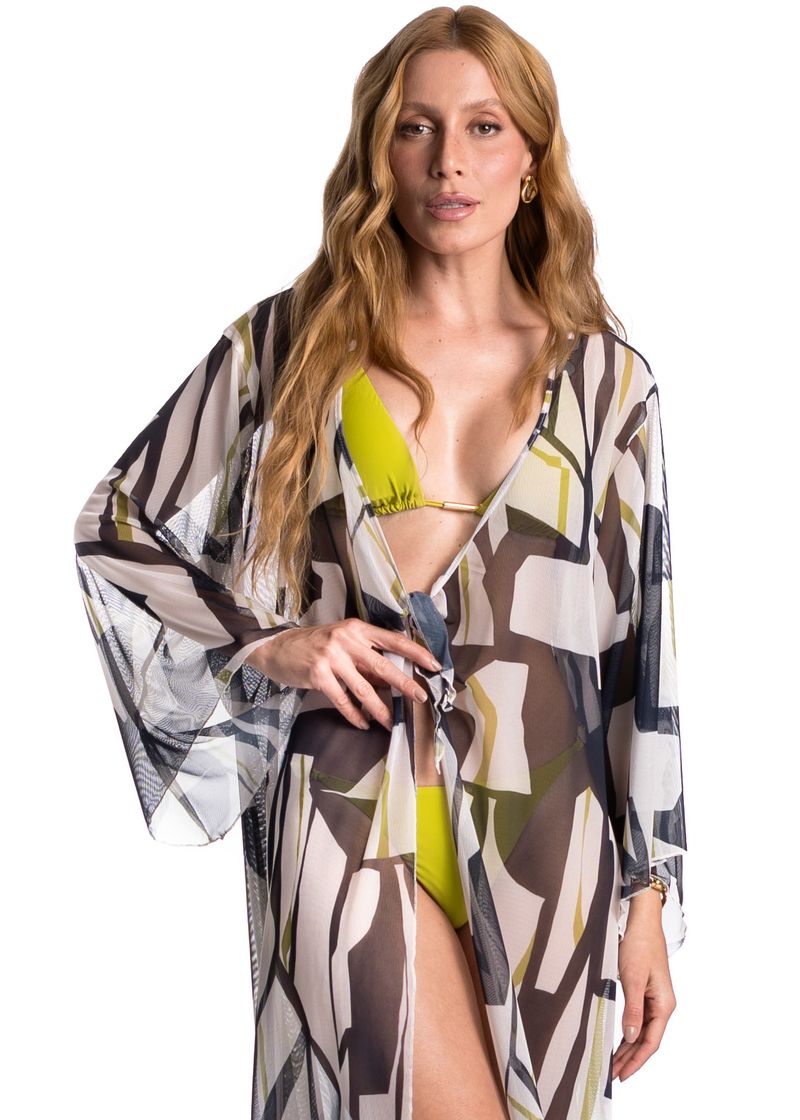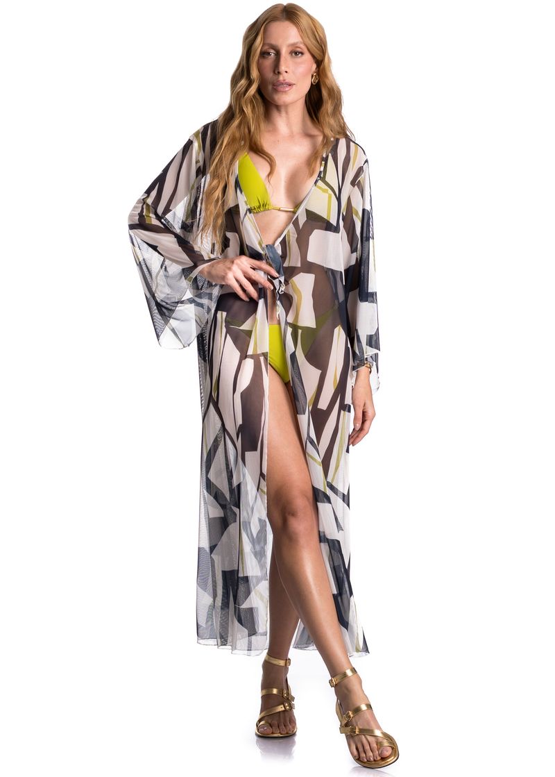 Kaftan De Tule Com Manga Azurim é a escolha perfeita para os dias ensolarados! Sua modelagem ampla e fluida proporciona um caimento leve e confortável, enquanto o comprimento midi e as mangas longas conferem um toque de sofisticação. A amarração frontal é o detalhe indispensável, tornando a peça ainda mais elegante. O Kaftan Azurim une estilo e conforto, garantindo um visual sofisticado durante os dias mais quentes do ano.
