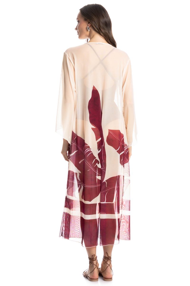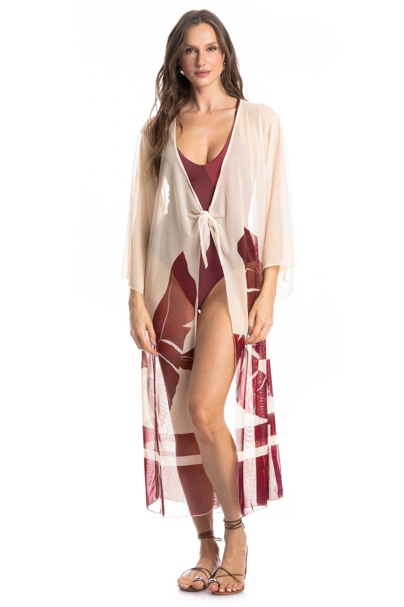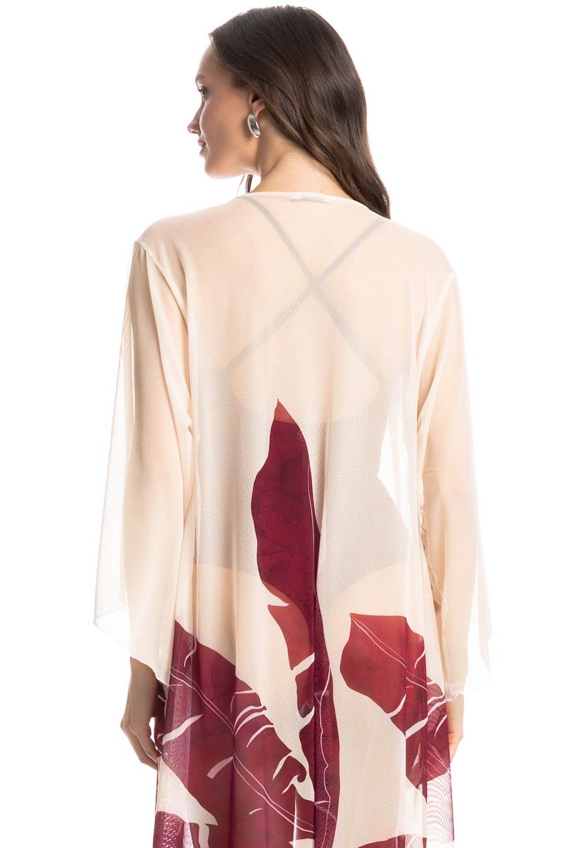 Kaftan De Tule Com Manga Folha é a escolha perfeita para os dias ensolarados! Sua modelagem ampla e fluida proporciona um caimento leve e confortável, enquanto o comprimento midi e as mangas longas conferem um toque de sofisticação. A amarração frontal é o detalhe indispensável, tornando a peça ainda mais elegante. O Kaftan Folha une estilo e conforto, garantindo um visual sofisticado durante os dias mais quentes do ano.
