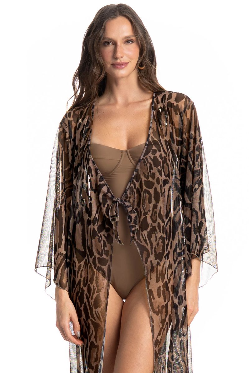 Kaftan De Tule Com Manga Onça é a escolha perfeita para os dias ensolarados! Sua modelagem ampla e fluida proporciona um caimento leve e confortável, enquanto o comprimento midi e as mangas longas conferem um toque de sofisticação. A amarração frontal é o detalhe indispensável, tornando a peça ainda mais elegante. O Kaftan Onça une estilo e conforto, garantindo um visual sofisticado durante os dias mais quentes do ano.