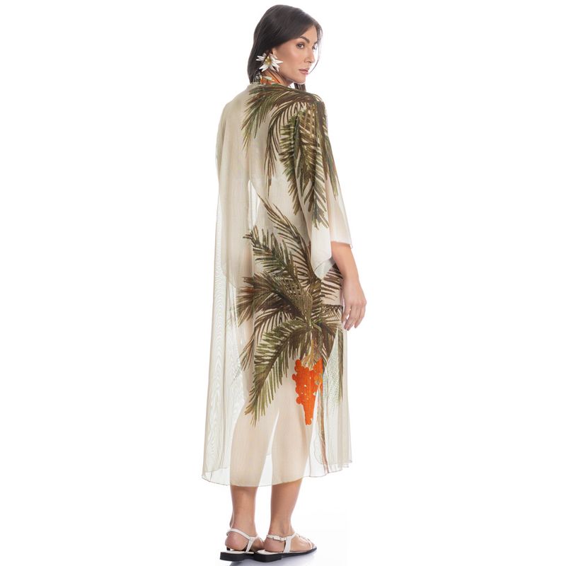 Kaftan Tule Com Manga Coqueiros é puro estilo para os dias de sol! Em modelagem ampla e fluida, possui comprimento longo, mangas amplas, e amarração frontal. O Kaftan Coqueiros é ideal para usar como saída de praia te oferecendo todo estilo e elegância durante os dias mais quentes do ano!