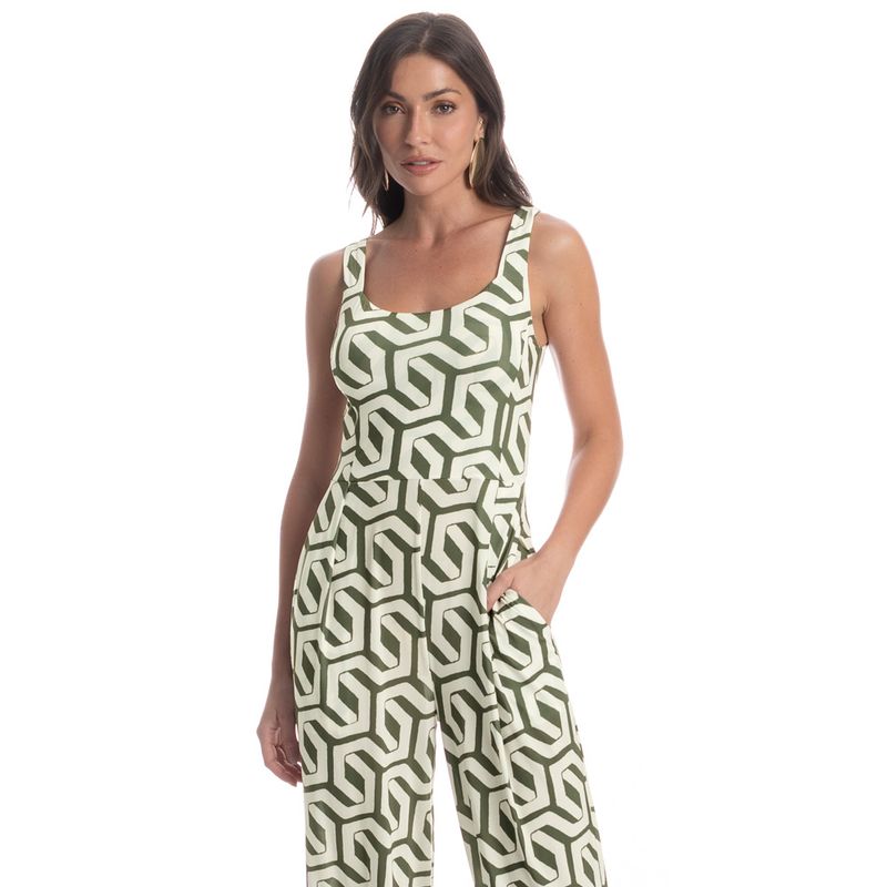 Macacão Estampado Com Bolso Verdena é estilo para o seu verão! Macacão em comprimento longo com modelagem confortável e fluída, possui decote reto e alças largas paralelas proporcionando excelente sustentação. Detalhe para seus bolsos estilo faca nas laterais da peça. Conta com estampa exclusiva geométrica, moderna e com muito estilo para você aproveitar a melhor estação!