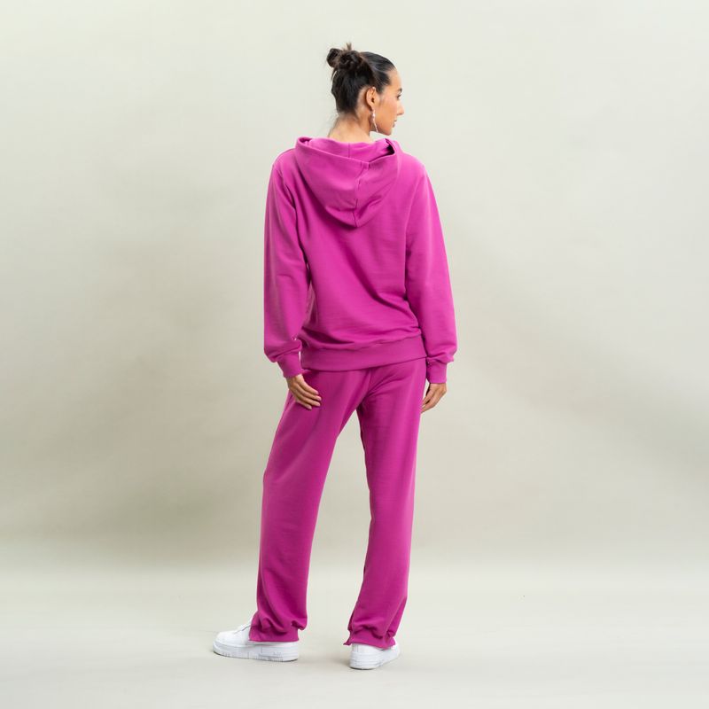 Confeccionado em Moletom, estrutura de moletom simples trabalhado com fio de mistura de algodão e poliéster, em tingimento duplo unicolor. Possui excelente caimento, fluidez e bom toque.