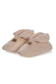 Pantufa Feminina Emanuele é puro conforto! Confeccionada em Fleece, tecido sintético leve, macio, com ambos os lados escovados. Feito de fibras finíssimas, que permite criar uma superfície uniforme e densa. Entre os fios da superfície cria-se uma camada de ar que em consequência forma o isolamento térmico, deixando seus pés quentinhos no inverno. Detalhe para a etiqueta de couro na gáspea, um verdadeiro charme! Sua sola é antiderrapante para sua segurança, e também pode ser lavada a máquina.