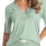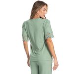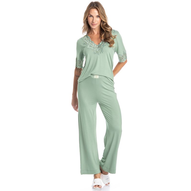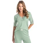 Pijama Capri Com Renda Melina é puro charme! Em modelagem muito confortável, sua blusa possui mangas curtas e decote com aplicação em renda que torna a peça ainda mais sofisticada. Sua calça com modelagem capri mais soltinha, conta com elástico macio para um melhor conforto em seus momentos de descanso. Detalhe para sua linda e exclusiva etiqueta logo Daniela Tombini no centro do cós. Muita sensualidade e sutileza para momentos inesquecíveis!