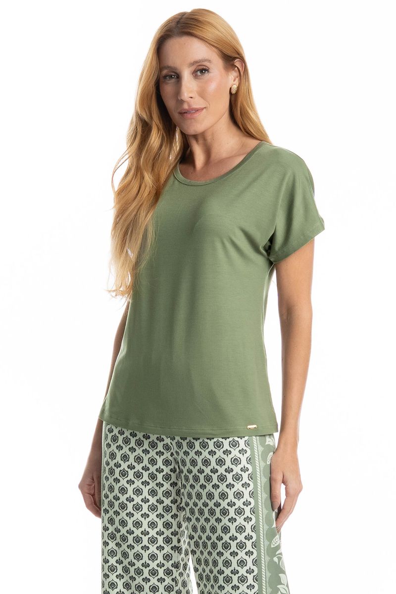 Sua blusa confeccionada em Viscolycra, tecido proveniente da fusão das fibras de elastano e viscose, gerando um tecido leve, confortável e de fácil cuidado. É uma das principais bases usadas em nossa marca por sua maciez e conforto.