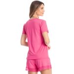 Pijama Curto Com Renda Bia é puro charme! Sua blusa em modelagem ampla, conta com aplicação de uma linda e delicada renda no decote. Seu shorts é leve e soltinho, possui renda na barra e elástico macio no cós que garante muito conforto em seus momentos de descanso.