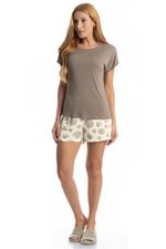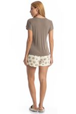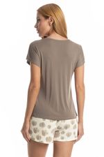 Pijama Curto Feminino Ágata é puro conforto! Sua blusa lisa em modelagem ampla, possui mangas curtas e decote redondo com acabamento em viés. Seu short é todo estampado em uma linda e exclusiva estampa, conta também com elástico macio no cós proporcionando muito conforto e sensação de bem-estar. Muito estilo e conforto para suas noites de verão!