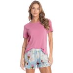 Pijama Curto Feminino La Villa é puro conforto! Sua blusa lisa em modelagem ampla, possui mangas curtas e decote redondo com acabamento em viés. Seu short é todo estampado em uma linda e exclusiva estampa, conta também com elástico macio no cós proporcionando muito conforto e sensação de bem-estar. Detalhe para sua etiqueta personalizada aplicada no centro do cós, muito estilo e conforto para suas noites de verão!
