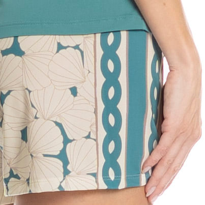 Pijama Curto Feminino Natália é puro conforto! Sua blusa lisa em modelagem ampla, conta com mangas curtas e decote redondo debruado em viés. Detalhe para sua plaquinha logo Daniela Tombini na lateral esquerda da peça. Já seu shorts em modelagem leve e soltinha, conta com elástico macio no cós garantindo muito conforto em seus momentos de descanso. Detalhe para sua exclusiva estampa de conchas, proporcionando muito charme à peça!