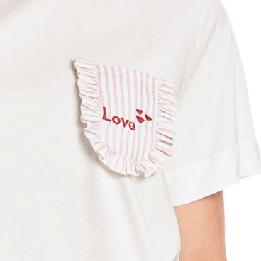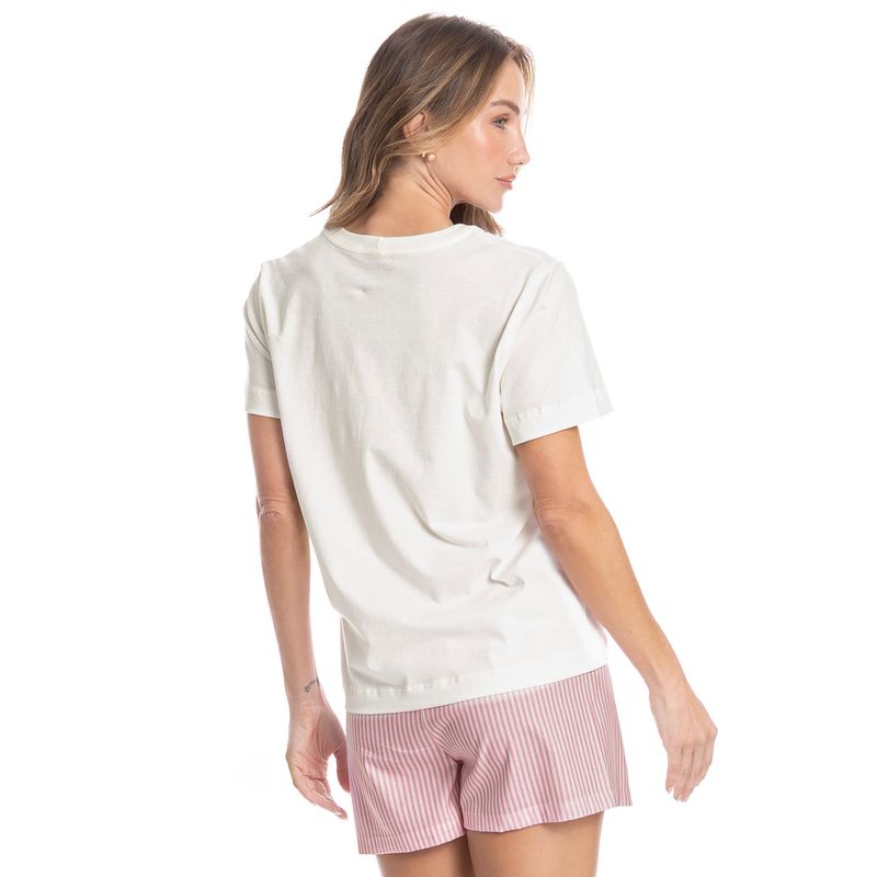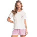 Pijama Curto Feminino Nina é puro conforto! Sua blusa em modelagem ampla, possui decote redondo em gola, mangas curtas, e bolso com um lindo e delicado bordado. Já seu shorts em modelagem soltinha e leve, conta com elástico macio no cós para melhor conforto em seus momentos de descanso, e uma moderna e exclusiva estampa listrada. Muito charme para suas noites de verão!
