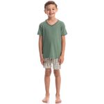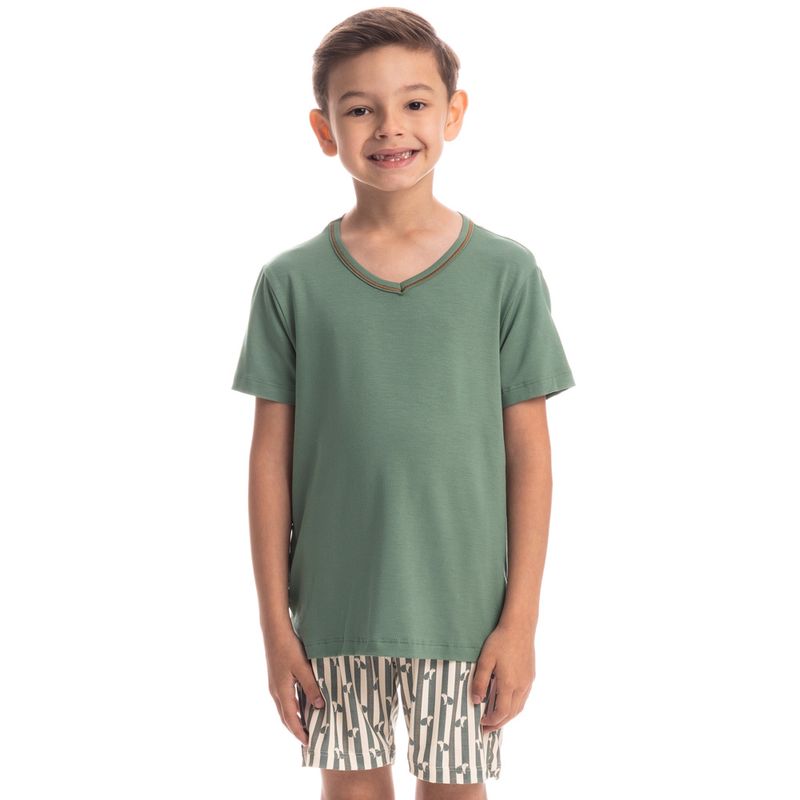 Pijama Curto Infantil Capivara Tombini é excelente para os dias mais quentes! Sua blusa em uma modelagem confortável, possui manga curta e decote V debruado em viés com trançador de tom contrastante. Detalhe para sua etiqueta termocolante de capivara na lateral esquerda da peça. Seu shorts é todo estampado em uma divertida estampa de capivaras. Muito estilo e conforto para estar com você nos melhores momentos!
