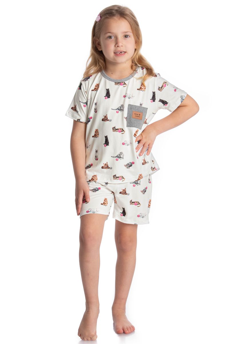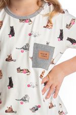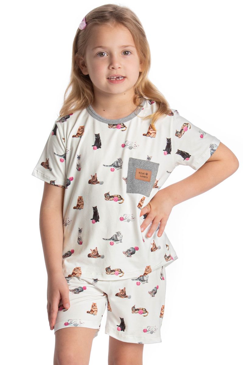 Pijama Curto Infantil Cats é puro charme! Sua blusa manga curta possui modelagem ampla e decote redondo debruado em viés. Seu shorts também em modelagem leve, elástico macio no cós. Detalhe para suas exclusivas e divertidas estampas de gatinhos, impossível não se apaixonar!