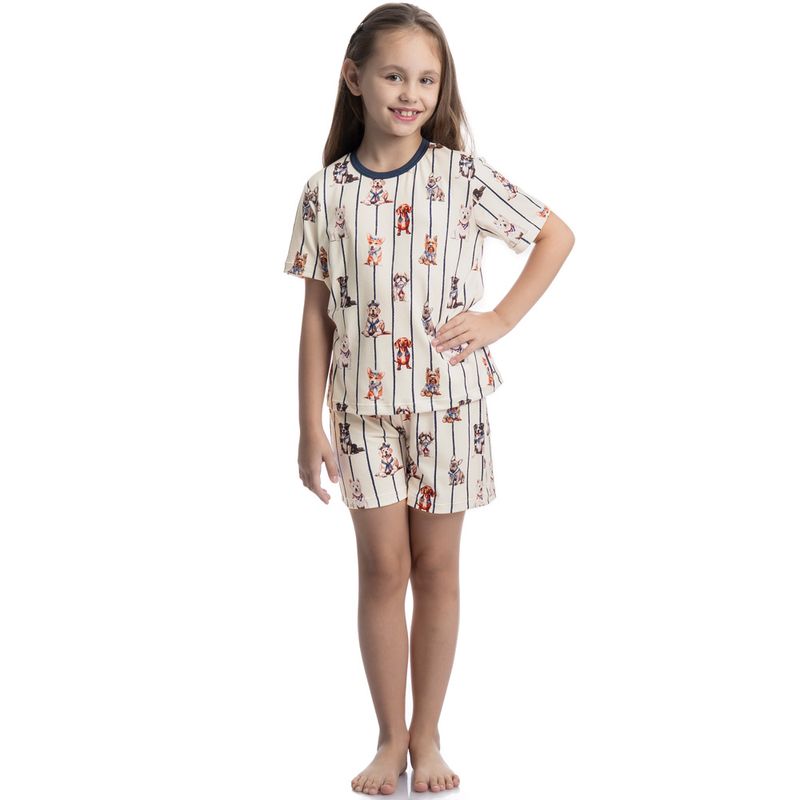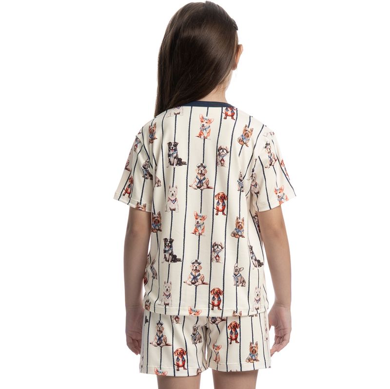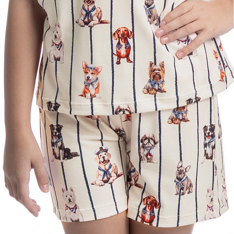 Pijama Curto Infantil Unissex Sailor Dogs é puro charme! Sua blusa manga curta possui modelagem ampla e decote redondo debruado em viés de tom contrastante. Seu shorts também em modelagem leve possui elástico macio no cós, garantindo muito conforto em seus momentos de descanso. Detalhe para sua exclusiva e divertida estampa de cães marinheiros, impossível não se apaixonar!