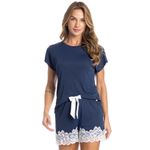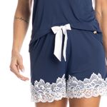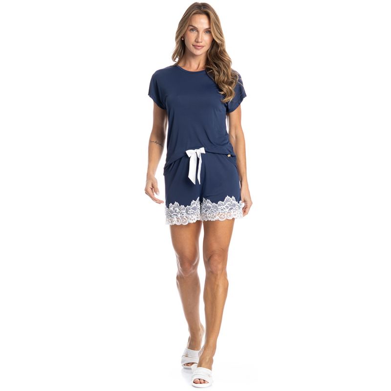 Pijama Curto Isa é puro conforto! Sua blusa em modelagem ampla, conta com mangas curtas e decote redondo com acabamento em viés. Detalhe para sua plaquinha logo Daniela Tombini na lateral inferior esquerda da peça. Já seu short, em modelagem soltinha e leve possui aplicação de renda na barra e elástico macio no cós, garantindo extremo conforto para suas noites. Detalhe para seu laço de cetim no centro do cós. Uma peça que garante muito conforto, leveza e suavidade para os melhores momentos!