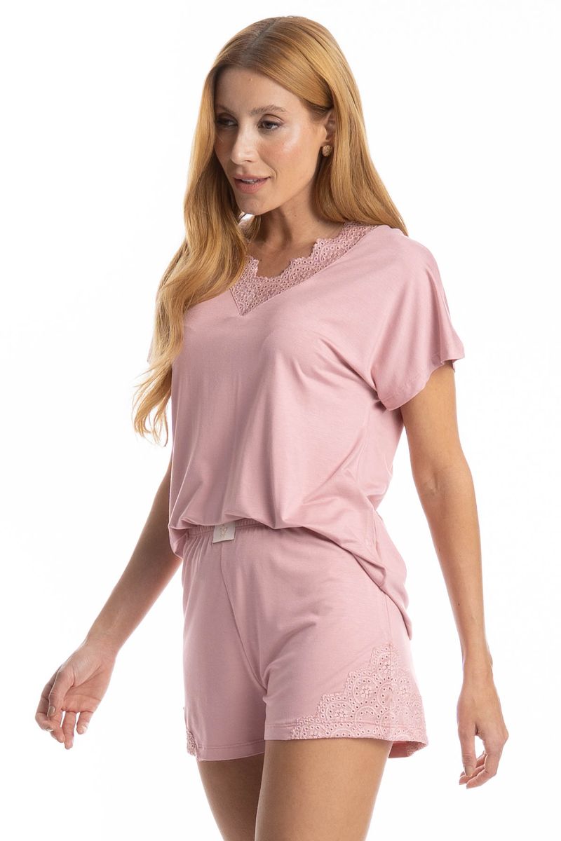 Pijama Curto Laise é puro charme! Em modelagem muito confortável, sua blusa manga curta possui decote em V com acabamento em renda. Seu shorts com modelagem mais solta, conta com elástico macio para um melhor descanso, possui etiqueta logo Daniela Tombini e conta com aplicação de uma linda e delicada renda. Perfeito para momentos de descanso cheio de conforto e elegância!