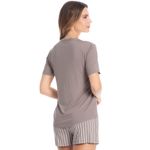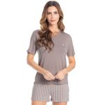 Pijama Curto Latte é puro conforto! Sua blusinha em modelagem ampla, conta com mangas curtas e como detalhe um delicado bordado logo Daniela Tombini na lateral esquerda da peça. Seu shorts é soltinho e leve, possui elástico macio no cós e uma moderna e exclusiva estampa de listras, garantindo ainda mais charme!