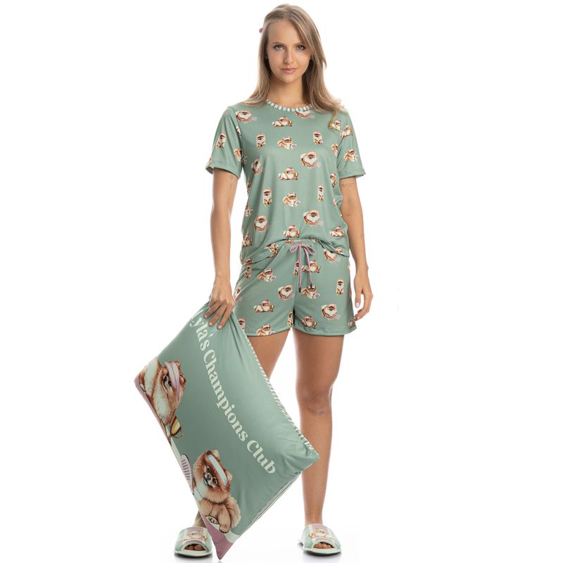 Pijama Curto Lyla Sports é puro charme! Sua blusa manga curta possui modelagem ampla e decote redondo debruado em viés de estampa contrastante. Seu shorts também em modelagem leve, possui falso amarre e elástico macio no cós. Detalhe para sua exclusiva e divertida estampa da nossa mascote Lyla, impossível não se apaixonar!