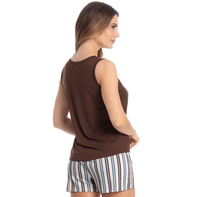 Pijama Curto Regata Lia é puro conforto! Sua blusa é lisa com modelagem regata, possui decote redondo e um delicado bordado na lateral esquerda da peça. Seu short com uma sofisticada estampa de listras, possui modelagem ampla com elástico macio garantindo muito conforto em seus momentos de descanso, e um falso amarre decorativo no cós. Perfeito para te deixar ainda mais elegante e estilosa em suas noites!