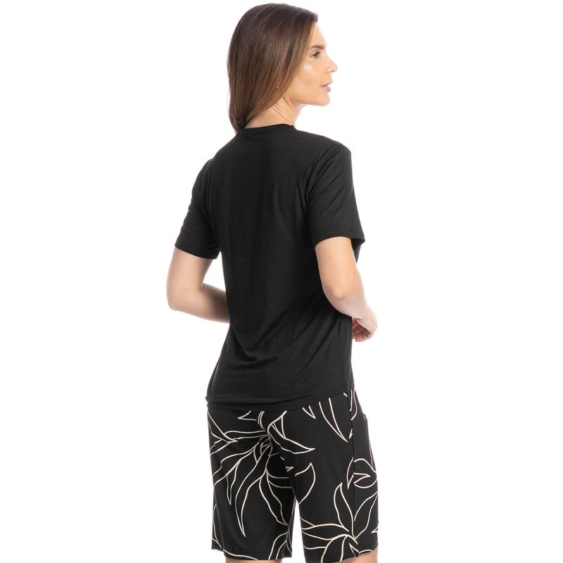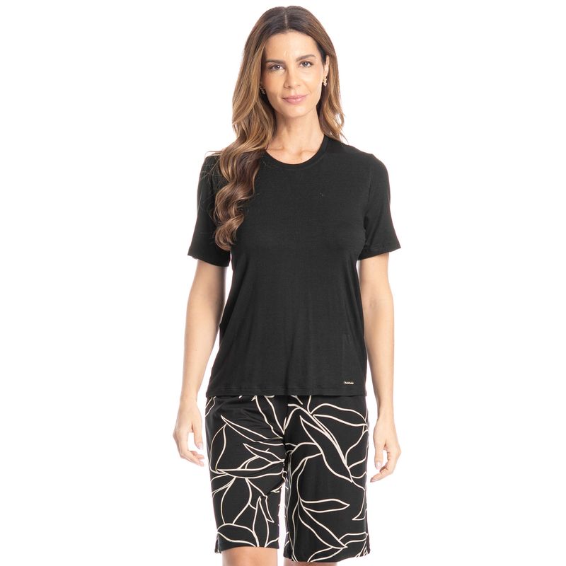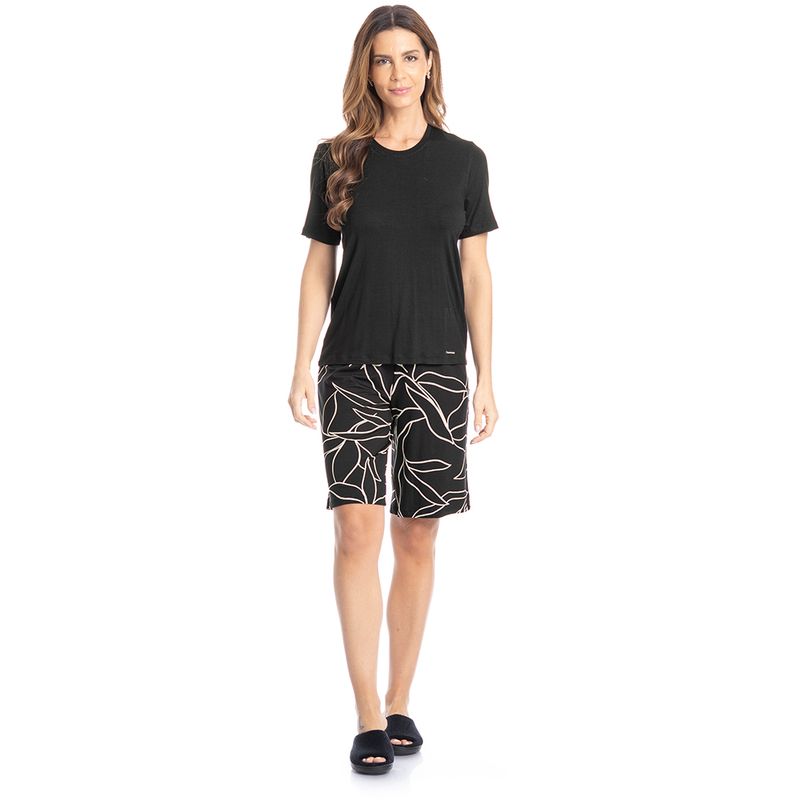 Pijama Feminino Bermuda Michele é pura elegância! Em modelagem ampla, com um tecido de toque surpreendente, o pijama Michele é perfeito para seu Verão. Sua blusa lisa possui mangas curtas e decote redondo debruado em viés. Detalhe para sua etiqueta personalizada Daniela Tombini na lateral inferior esquerda da peça. Sua bermuda é toda estampada e possui elástico macio no cós para melhor conforto em seus momentos de descanso!