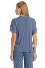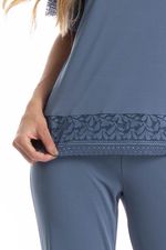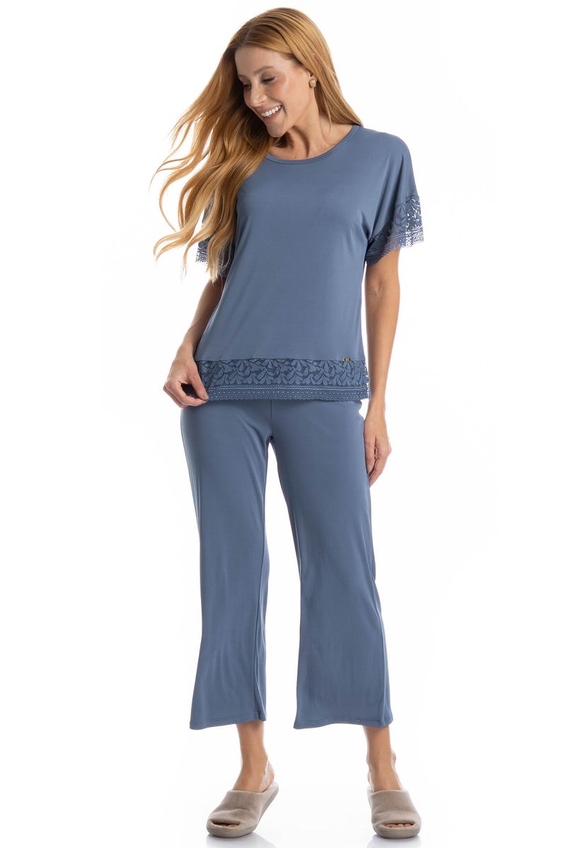 Pijama Feminino Capri Amanda é elegância para suas noites! Sua blusa em modelagem ampla, conta com mangas curtas possui uma linda renda e decote redondo. Sua calça em modelagem capri possui cós com elástico macio, garantindo ainda mais charme!