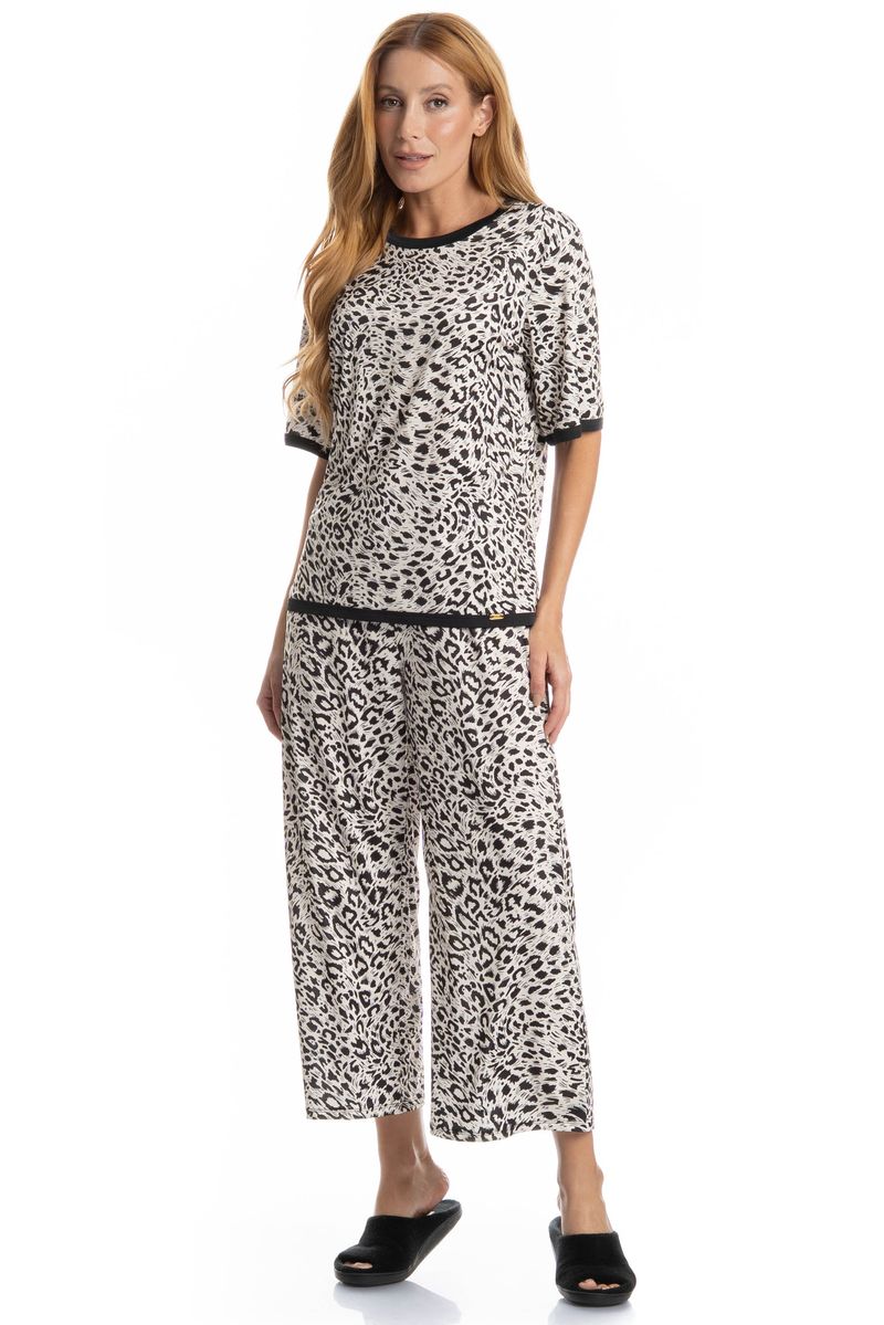 Pijama Feminino Capri Betina é conforto para suas noites! Em modelagem ampla e confortável, sua blusa possui manga curta e decote redondo. Detalhe para a plaquinha logo Daniela Tombini na lateral inferior esquerda da peça. Já a sua calça em modelagem capri, possui elástico macio no cós que garante muito conforto. Muito estilo, leveza e suavidade nos melhores momentos!