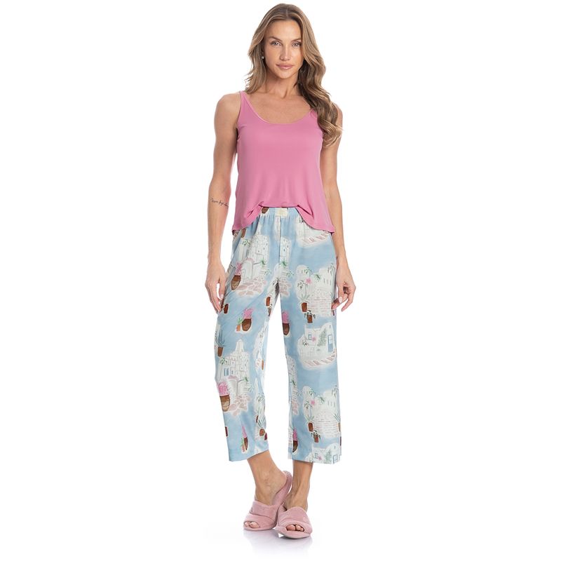 Pijama Feminino Capri La Villa é pura elegância! Em modelagem ampla e confortável, sua blusa regata possui decote redondo com acabamento em viés, e suas alças são finas. Confeccionada em Liganete Microfibra Amni, tecido de poliamida característico pelo seu toque de malha fria, caimento leve e de fácil cuidado. A composição do tecido conta com a excelência do fio Rhodia Amni de alta qualidade.