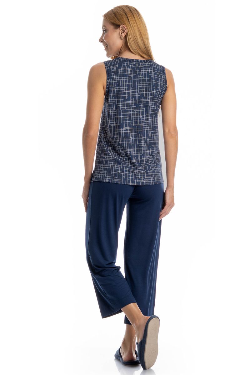 Pijama Feminino Capri Regata Thais é conforto para suas noites! Em modelagem ampla e confortável, sua blusa com decote redondo e modelo regata. Já a sua calça em modelagem capri, possui elástico macio no cós que garante muito conforto. Muito estilo, leveza e suavidade nos melhores momentos!