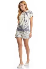 Pijama Feminino Curto Amália é puro conforto! Sua blusa em modelagem ampla, conta com mangas curtas e decote redondo com acabamento em viés. Já seu short, em modelagem soltinha e leve possui elástico macio no cós, garantindo extremo conforto para suas noites. Uma peça que garante muito conforto, leveza e suavidade para os melhores momentos!
