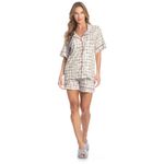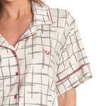 Pijama Feminino Curto Americano Lorena é pura elegância! Sua blusa possui decote em V com gola, manga curta e frente abotoada com um excelente acabamento, detalhe para seu delicado bordado exclusivo Daniela Tombini, e seus acabamentos em vivo de tom contrastante nas mangas, abertura da frente e gola, proporcionando ainda mais sofisticação. Seu short possui uma modelagem soltinha e leve, e também conta com acabamento em vivo contrastante na barra. Muito conforto para você curtir a melhor estação do ano!