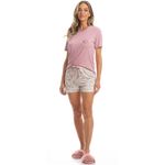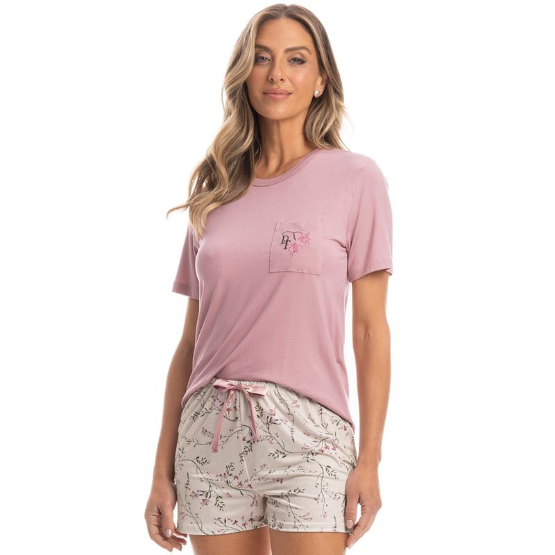 Pijama Feminino Curto Brinco De Princesa é puro conforto! Sua blusa lisa com manga curta possui decote redondo, e bolso com um delicado bordado na lateral esquerda da peça. Seu short com uma linda estampa floral de brinco de princesa, possui modelagem ampla com elástico macio e amarre de cetim no cós. Perfeito para te deixar ainda mais elegante e estilosa em suas noites!