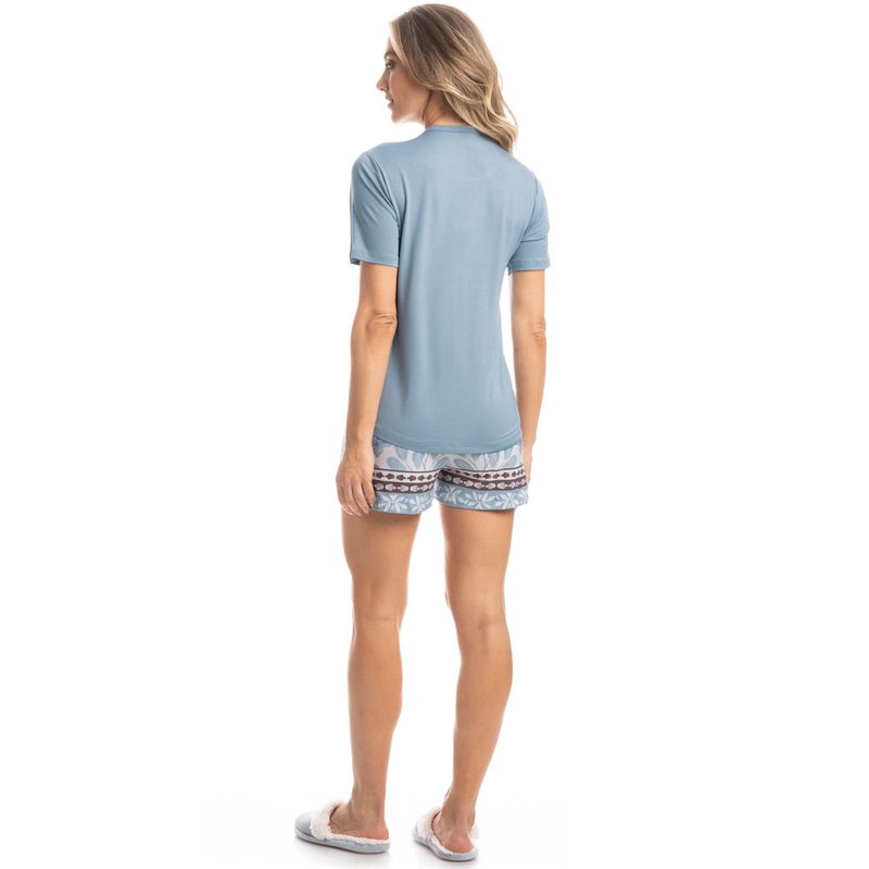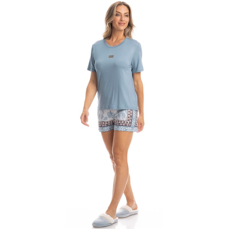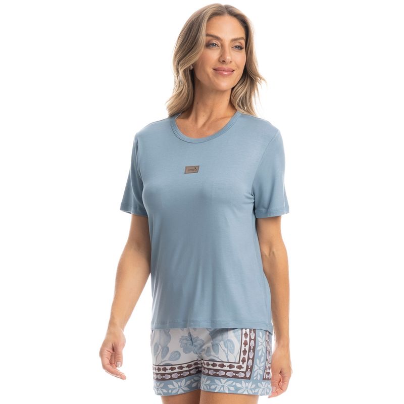 Pijama Feminino Curto Cajueiro é puro estilo! Sua blusa lisa manga curta possui decote redondo com acabamento em viés. Detalhe para sua etiqueta personalizada Daniela Tombini no centro da blusa. Seu shorts amplo e confortável possui elástico macio no cós, em uma linda estampa localizada exclusiva Daniela Tombini desenhada à mão, para você aproveitar suas noites com muito estilo e conforto.