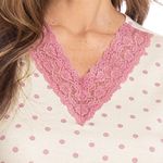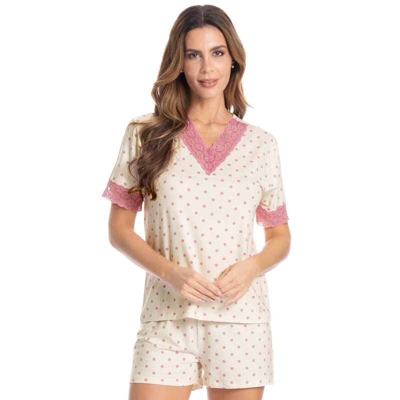 Pijama Feminino Curto Com Renda Maria é puro conforto! Sua blusa possui modelagem ampla em manga curta, conta com aplicação de uma sofisticada renda em seu decote e mangas. Detalhe para seu bordado logo Daniela Tombini na lateral inferior esquerda da peça. Seu short de comprimento curto, possui elástico macio no cós e renda na barra. Delicadeza das rendas, modelagem moderna com tecido de toque surpreendente e a sofisticação que você merece!
