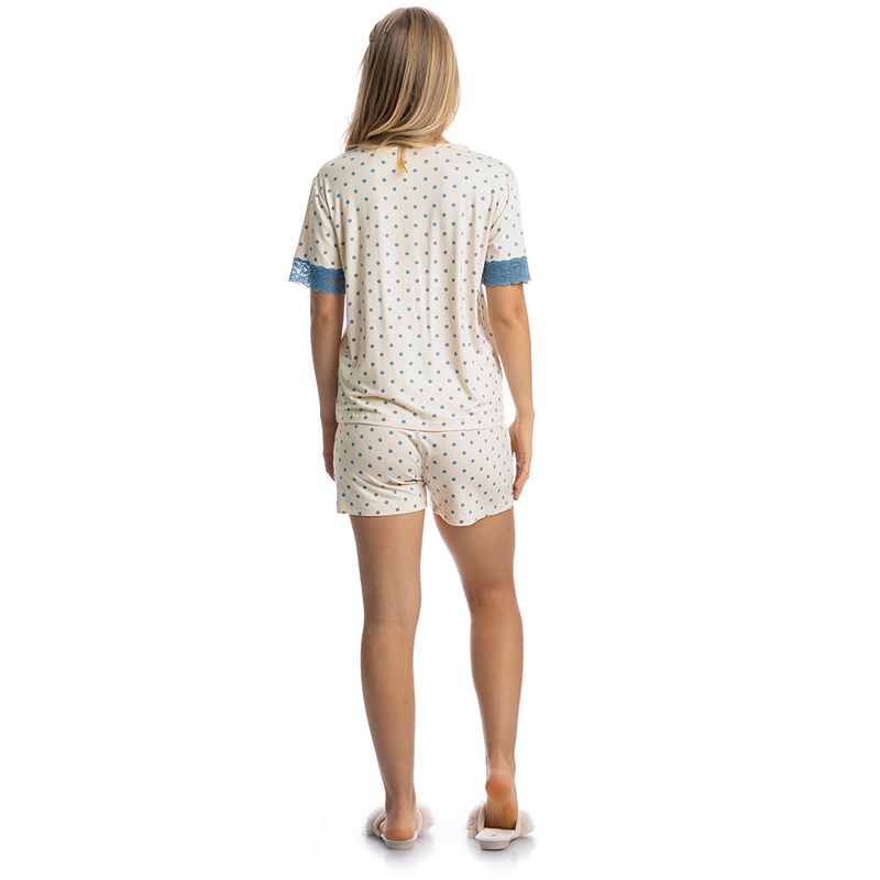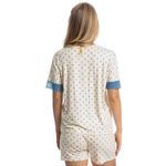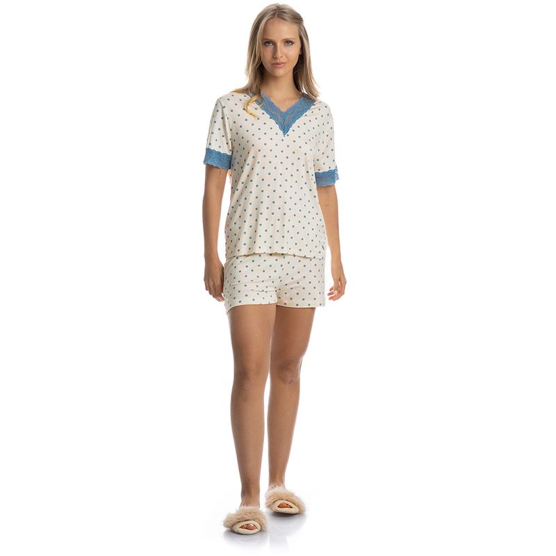 Pijama Feminino Curto Com Renda Maria é puro conforto! Sua blusa possui modelagem ampla em manga curta, conta com aplicação de uma sofisticada renda em seu decote e mangas. Detalhe para seu bordado logo Daniela Tombini na lateral inferior esquerda da peça. Seu short de comprimento curto, possui elástico macio no cós e renda na barra. Delicadeza das rendas, modelagem moderna com tecido de toque surpreendente e a sofisticação que você merece!