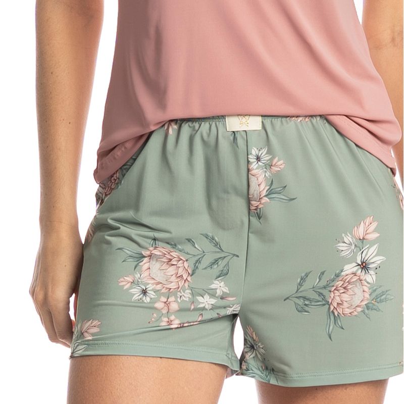Pijama Feminino Curto Fiore é puro conforto! Sua blusa em manga curta, possui decote redondo com acabamento em viés. Seu short estampado de comprimento curto, possui elástico macio e confortável no cós, detalhe para sua delicada etiqueta personalizada aplicada no centro do cós, garantindo muito charme! Uma combinação incrível, pensado para as melhores horas do dia! Modelagem moderna com tecidos de toque surpreendente e a sofisticação que você merece!