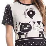 Pijama Feminino Curto Fred é puro charme! Sua blusa possui decote redondo debruado em viés e uma modelagem muito confortável. Detalhe para sua exclusiva e divertida estampa de gatinhos desenhada à mão. Seu short em modelagem soltinha possui elástico macio e amarre falso no cós. A coleção Fred foi desenhada pela artista Marlowa para quem é apaixonado por gatinhos, com estampas que celebram o amor felino, impossível não se apaixonar por cada detalhe!