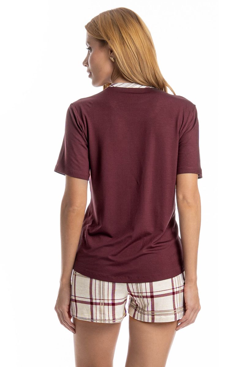 Pijama Feminino Curto Jaque é excelente para os dias mais quentes! A blusa possui uma modelagem confortável, em manga curta com decote redondo e trançador de tom contrastante. Seu Short é todo estampado em um moderno e exclusivo xadrez, detalhe para seu falso amarre aplicado no centro do cós. Muito estilo e conforto para estar com você nos melhores momentos!