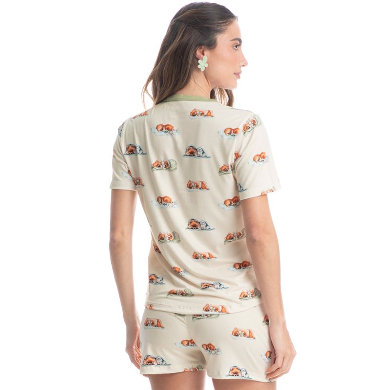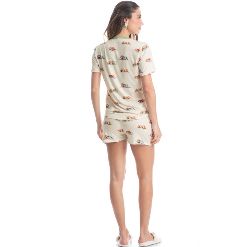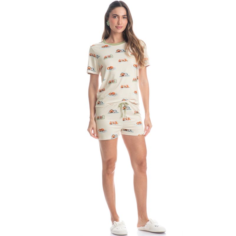 Pijama Feminino Curto Lyla Bunny é estilo para suas noites! Sua blusa em modelagem ampla e confortável possui decote redondo com acabamento em viés. Seu short possui modelagem leve, e conta com elástico macio no cós, para melhor conforto em suas horas de descanso. Detalhe para seu amarre no centro do cós. A peça é toda estampada com nossa fofa mascote Lyla, impossível não se apaixonar!