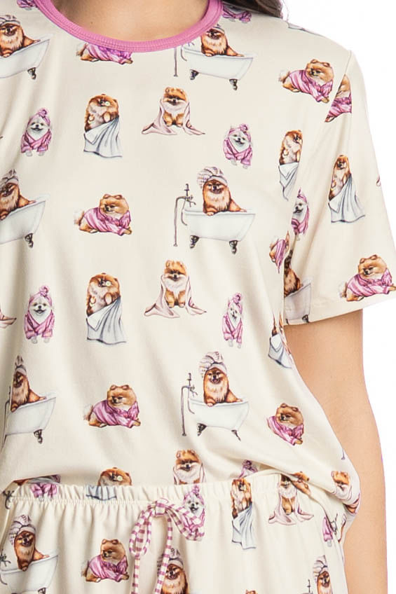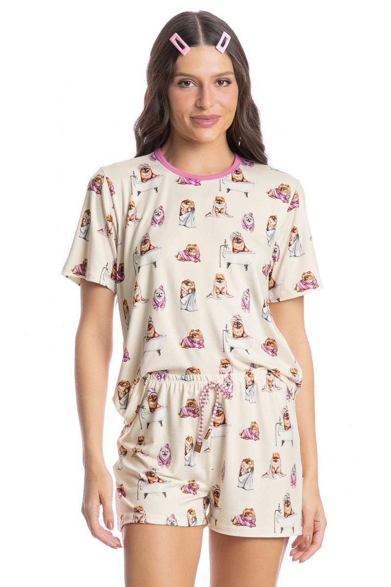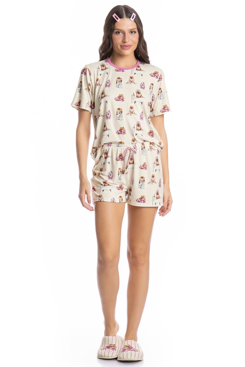 Pijama Feminino Curto Lyla Spa é estilo para suas noites! Sua blusa em modelagem ampla e confortável possui decote redondo com acabamento em viés. Seu short possui modelagem leve, e conta com elástico macio no cós, para melhor conforto em suas horas de descanso. Detalhe para seu amarre no centro do cós. A peça é toda estampada com nossa fofa mascote Lyla, impossível não se apaixonar!