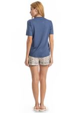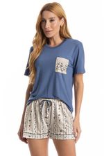 Pijama Feminino Curto Nina é puro conforto! Sua blusa em modelagem ampla, conta com mangas curtas e decote redondo com acabamento em viés, possui bolso na lateral esquerda. Já seu short, em modelagem soltinha e leve, possui falso amarre, e conta com elástico macio no cós, garantindo extremo conforto para suas noites. Uma peça que garante muito conforto, leveza e suavidade para os melhores momentos!