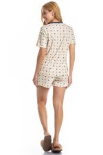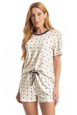 Pijama Feminino Curto Pati é puro conforto! Sua blusa em modelagem ampla, conta com mangas curtas e decote redondo com acabamento em viés. Já seu short, em modelagem soltinha e leve, possui falso amarre, e conta com elástico macio no cós, garantindo extremo conforto para suas noites. Uma peça que garante muito conforto, leveza e suavidade para os melhores momentos!