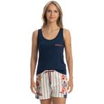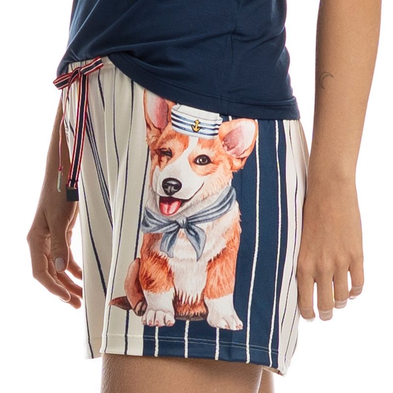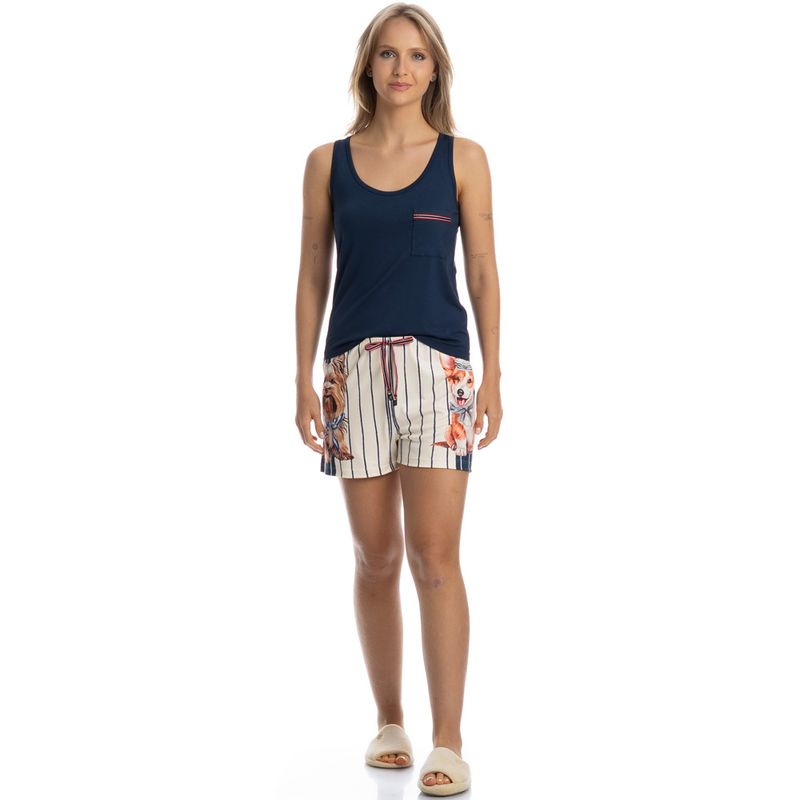 Pijama Feminino Curto Regata Com Bolso Sailor Dogs é conforto para seus dias mais quentes! Em modelagem ampla e confortável, sua blusa regata, possui decote redondo com acabamento em viés e bolso com aplicação de cadarço em tom contrastante, garantindo muito estilo. Seu short é amplo e confortável, todo estampado em uma estampa localizada de cães marinheiros desenhada à mão, conta com aplicação de um amarre falso no centro do cós, garantindo muito charme e elegância a peça!