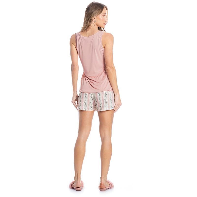 Pijama Feminino Curto Regata Oliveiras é puro conforto! Sua blusa é lisa em modelagem regata, possui decote redondo com acabamento em viés, detalhe para sua plaquinha Daniela Tombini na lateral inferior esquerda da peça, garantindo muito chame. Seu short curto é todo estampado com a flor de oliveiras, possui modelagem leve e elástico macio no cós. Detalhe para seu lindo laço de cetim no centro do cós. Estilo e elegância para seu verão!