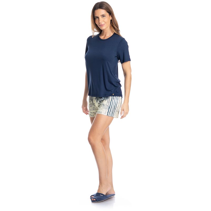 Pijama Feminino Curto Summer é puro conforto! Sua blusa em manga curta, possui decote redondo com acabamento em viés. Detalhe para sua plaquinha logo Daniela Tombini na lateral inferior esquerda da peça. Seu short estampado de comprimento curto, possui elástico macio e confortável no cós. Uma combinação incrível, pensado para as melhores horas do dia! Modelagem moderna com tecidos de toque surpreendente e a sofisticação que você merece!