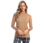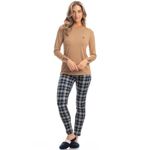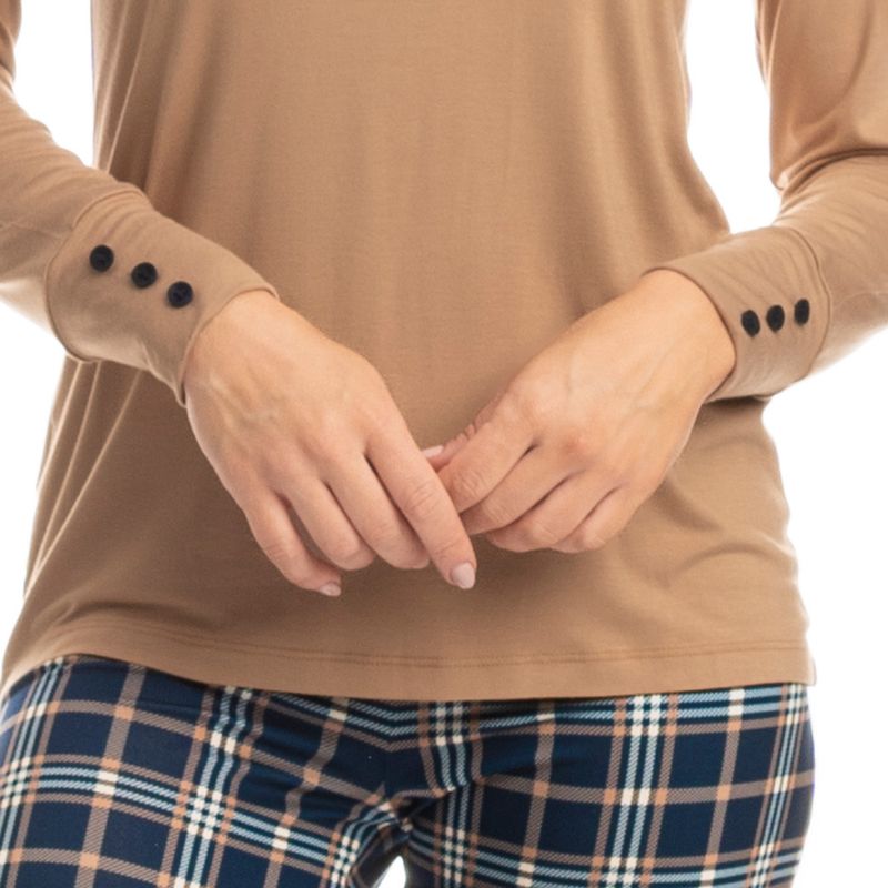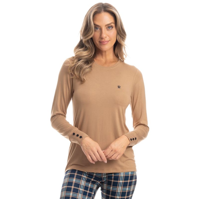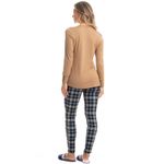 Pijama Feminino Legging Elisa é puro charme! Sua blusa lisa possui modelagem ampla e confortável com decote redondo, e acabamento em punho nas mangas com botões proporcionando muito estilo à peça . Detalhe para o bordado flor Daniela Tombini na lateral esquerda. Sua calça, em modelagem mais ajustada ao corpo estilo legging possui elástico macio e uma moderna estampa xadrez, perfeito para te deixar ainda mais linda e estilosa em suas noites.