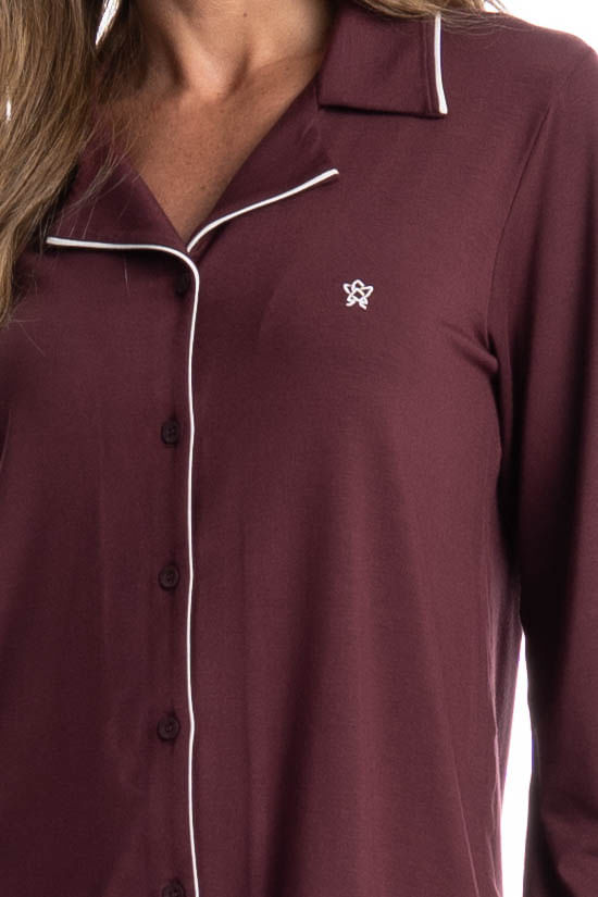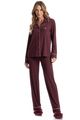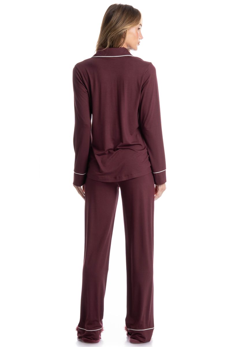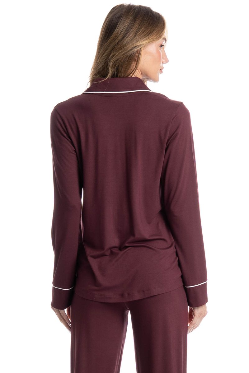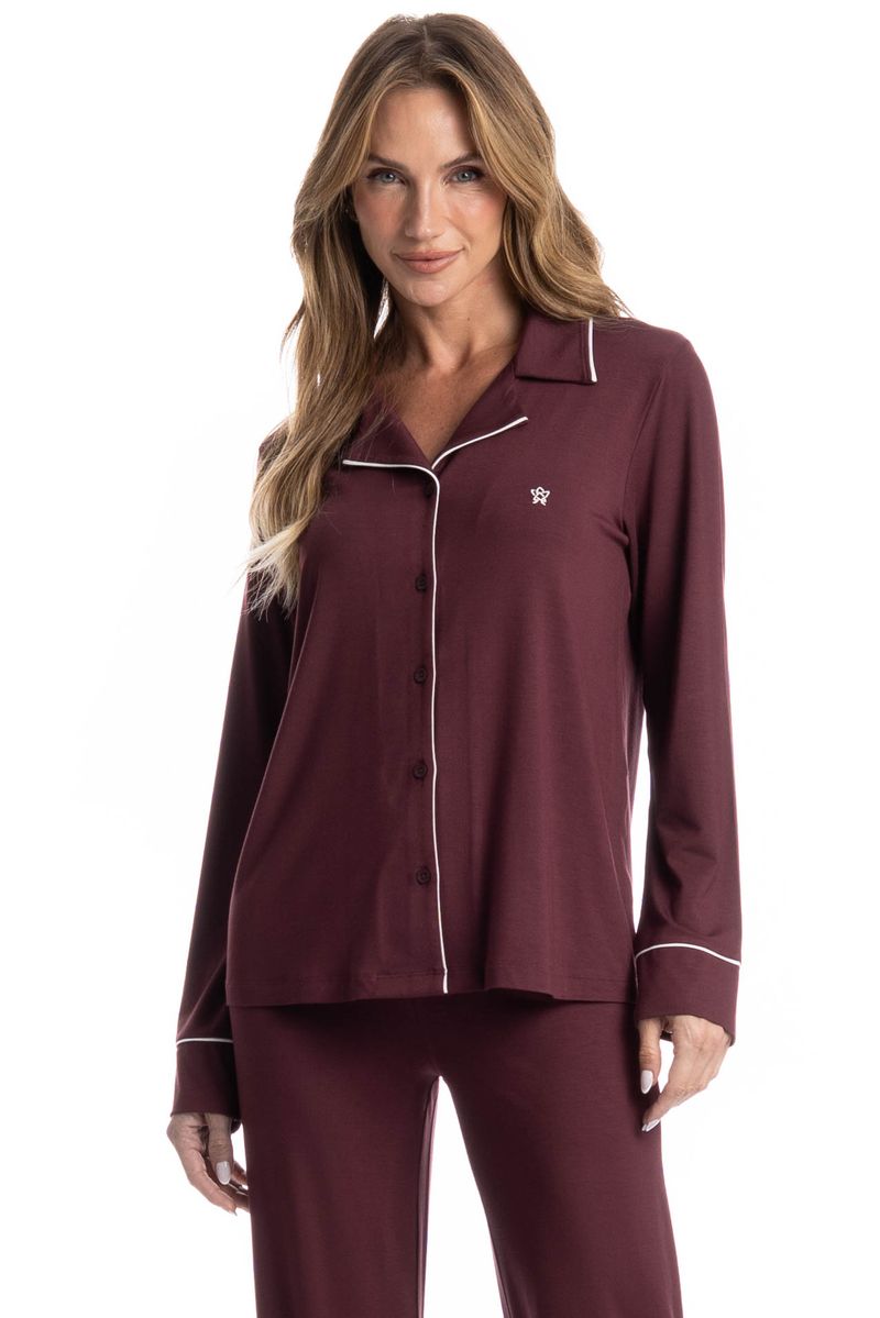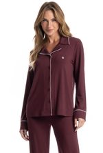 Pijama Feminino Longo Americano Acácia é pura elegância! Sua blusa possui decote em V com gola, manga longa e frente abotoada com um excelente acabamento, detalhe para seu delicado bordado logo Daniela Tombini, e seus acabamentos em vivo de tom contrastante nas mangas, abertura da frente, gola e na calça, proporcionando ainda mais sofisticação. Já sua calça, possui uma modelagem soltinha e leve. Muito conforto para você curtir a melhor estação do ano!