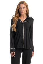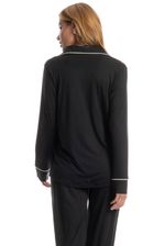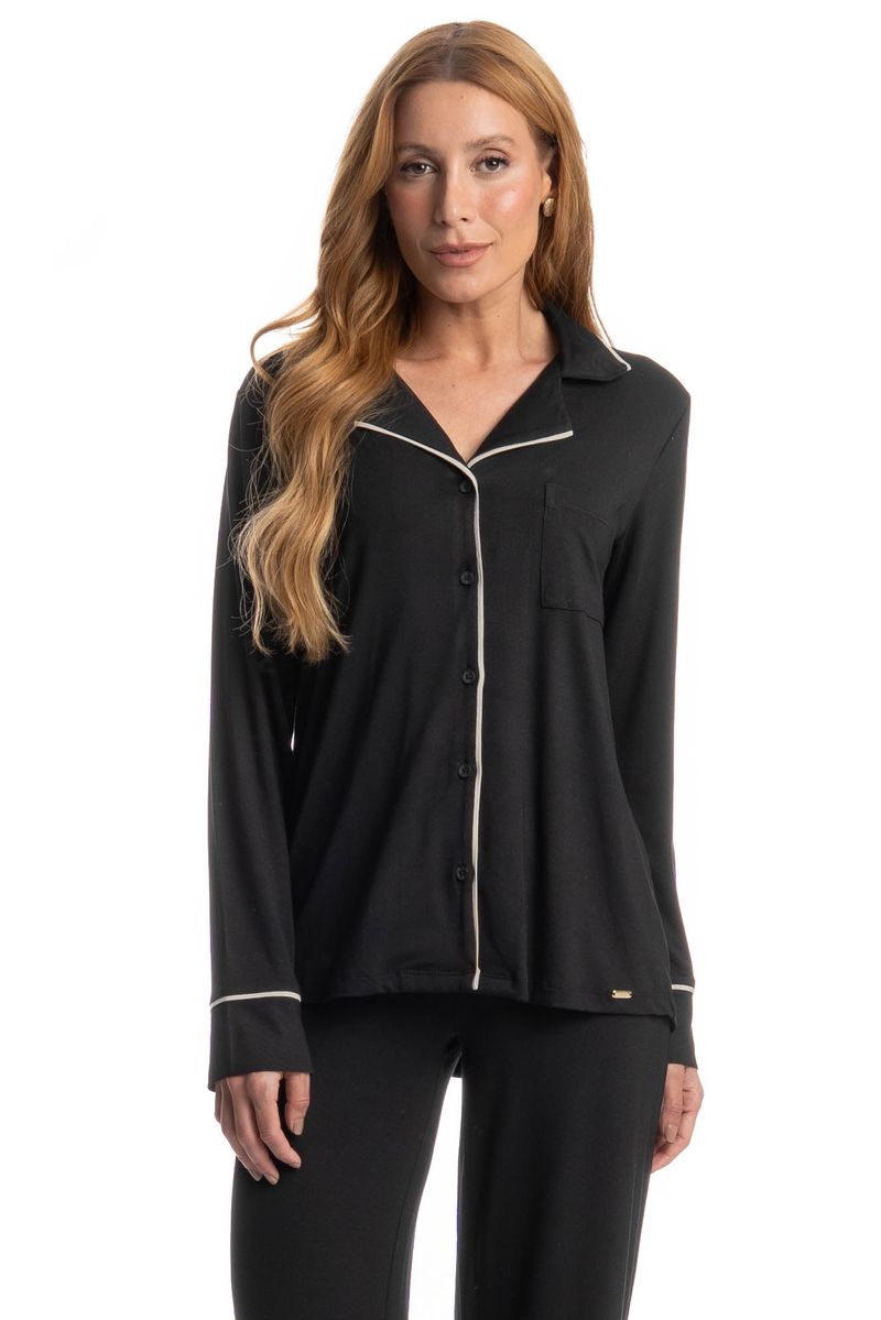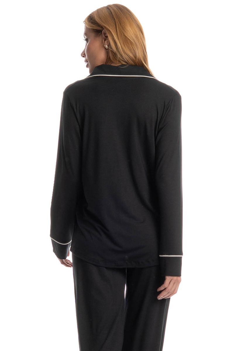 Pijama Feminino Longo Americano Carolina é pura elegância! Sua blusa possui decote em V com gola, manga longa e frente abotoada com um excelente acabamento, detalhe para sua delicada placa Daniela Tombini na lateral esquerda, e seus acabamentos em vivo de tom contrastante nas mangas, abertura da frente e gola, proporcionando ainda mais sofisticação. Já sua calça, possui uma modelagem soltinha e leve. Muito conforto para você curtir a melhor estação do ano!