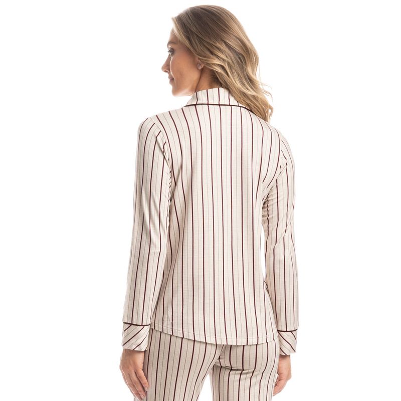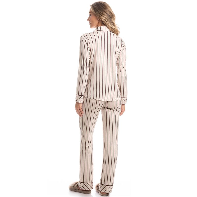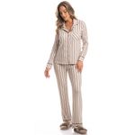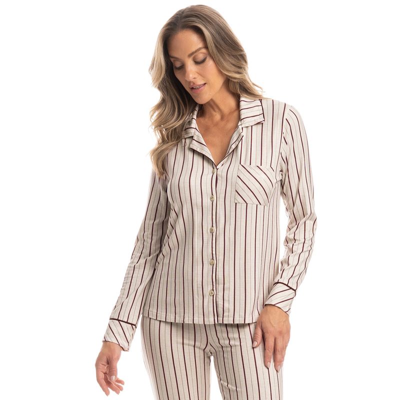 Pijama Feminino Longo Americano Caroline é a elegância que você procurava! Sua blusa abotoada com bolso conta com vivo contrastante aplicado em todo o transpasse, seu decote em gola e punhos de suas mangas longas. Sua calça em modelagem ampla possui elástico macio no cós, para melhor conforto em suas horas de descanso, detalhe para seus punhos com vivo contrastante aplicado. A escolha perfeita para você aproveitar a melhor estação do ano!